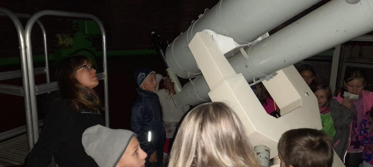 5.10. si páťáci spolu s rodiči užívali kouzlo vesmíru ve "VLAŠIMSKÉ HVĚZDÁRNĚ". Dalekohledem jsme pozorovali Vegu, Saturn, Mrtvou hvězdu.